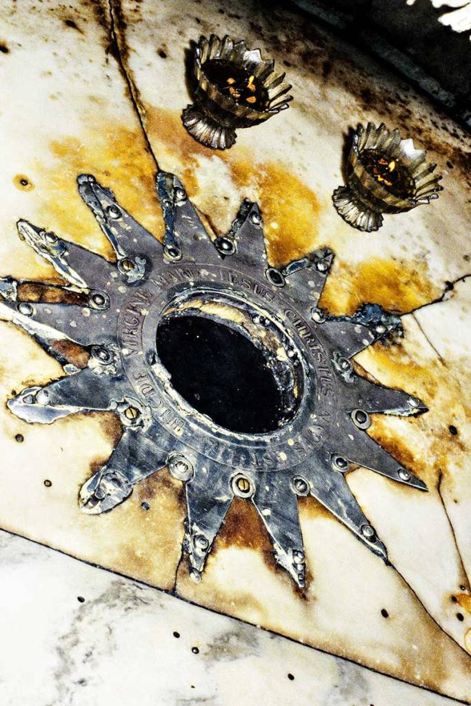 We descended down a stone staircase to a grotto where Jesus is believed to have been born. The exact spot is marked by a fourteen-point silver star above.