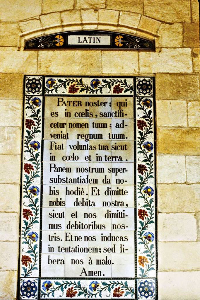 Church of Pater Noster is a French Carmelite monastery. It is located next to a site where Emperor Constantine constructed a church over a cave that had been linked with the Ascension. The walls of the 19th-century cloister display the Lord’s Prayer in over 100 different languages.