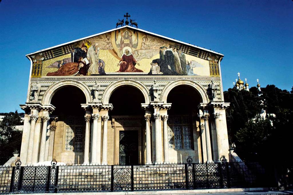 Temple of All Nations (Basilica of the Agony) was built over the rock on which Jesus prayed the night before he was crucified.