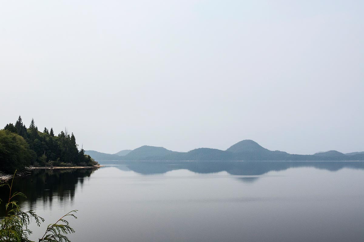 After Port Alberni, the two-lane Highway 4 is a twisty mountain road. It takes significant driving time to get to the coast. There are some wide open views thanks to the large lakes but there are minimal places to pull over to enjoy the views.