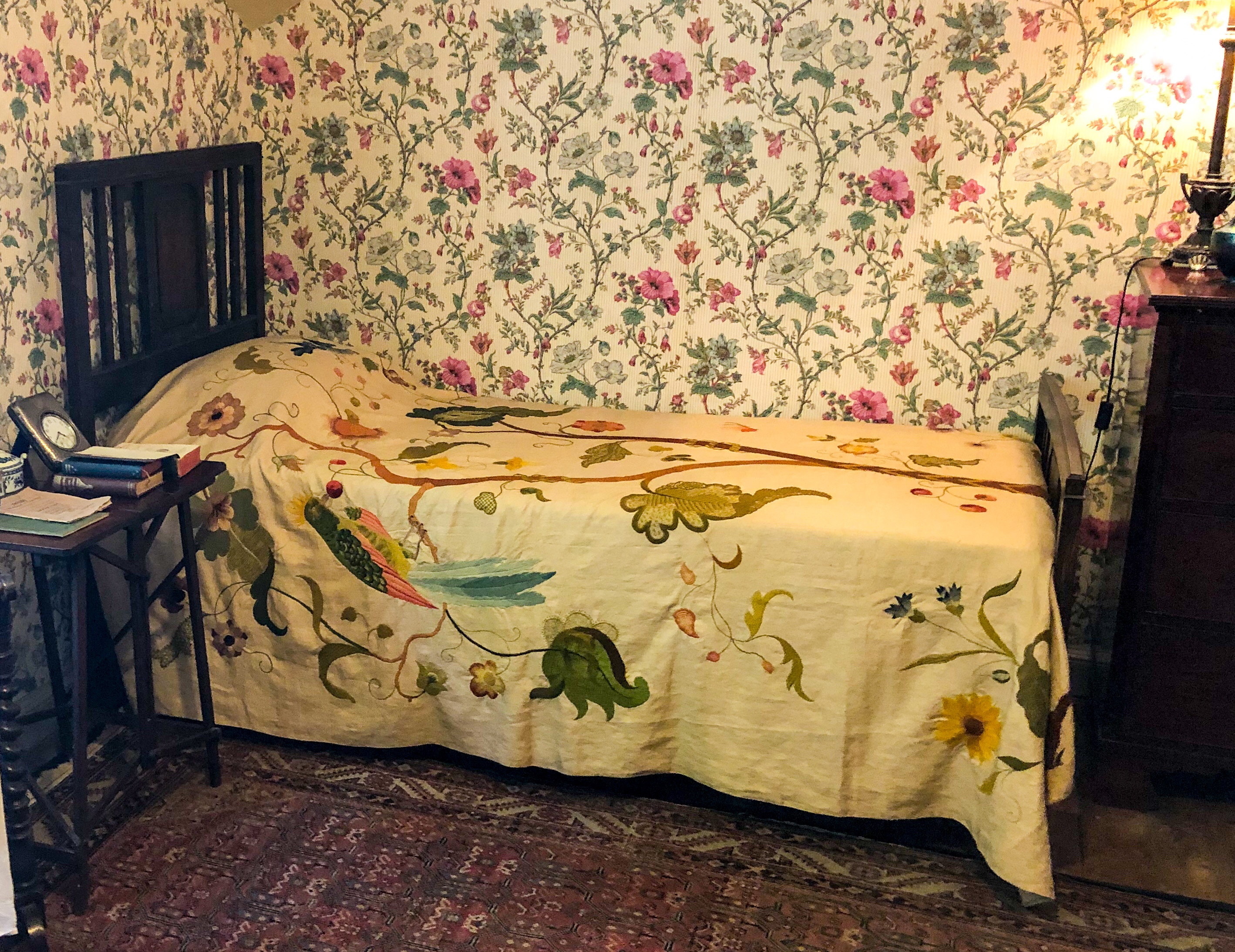 The sister’s bedroom even has the bed cover she embroidered! She was the artistic sibling but had no interest in inheriting the island.