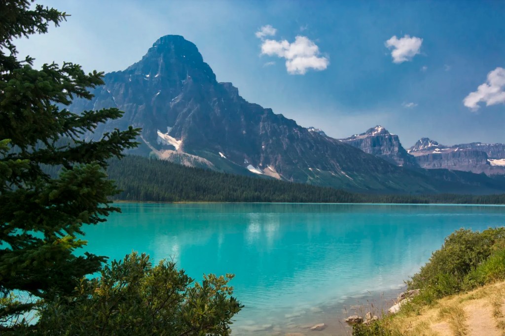 From here, you can take a 4 km trail to Chephren Lake at the base of pyramidal Mt Chephren (pronounced “kefren”) in the photo. It was named after one of the great pyramids in Egypt.