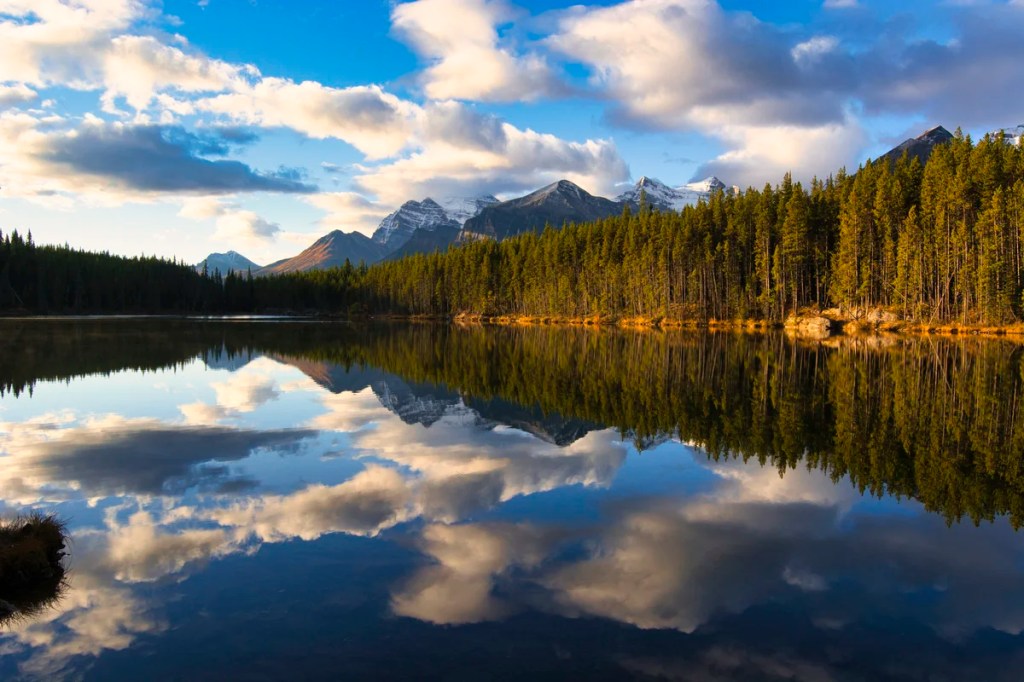 The first stop is only 2.7 km (1.7 mi) from the start of the Icefield Parkway. Herbert Lake is not a must-see, as the mountains appear to be far away and thus it lacks a dramatic backdrop. But the beautiful reflections and crystal-clear water make up for the lack of saturated turquoise colour.