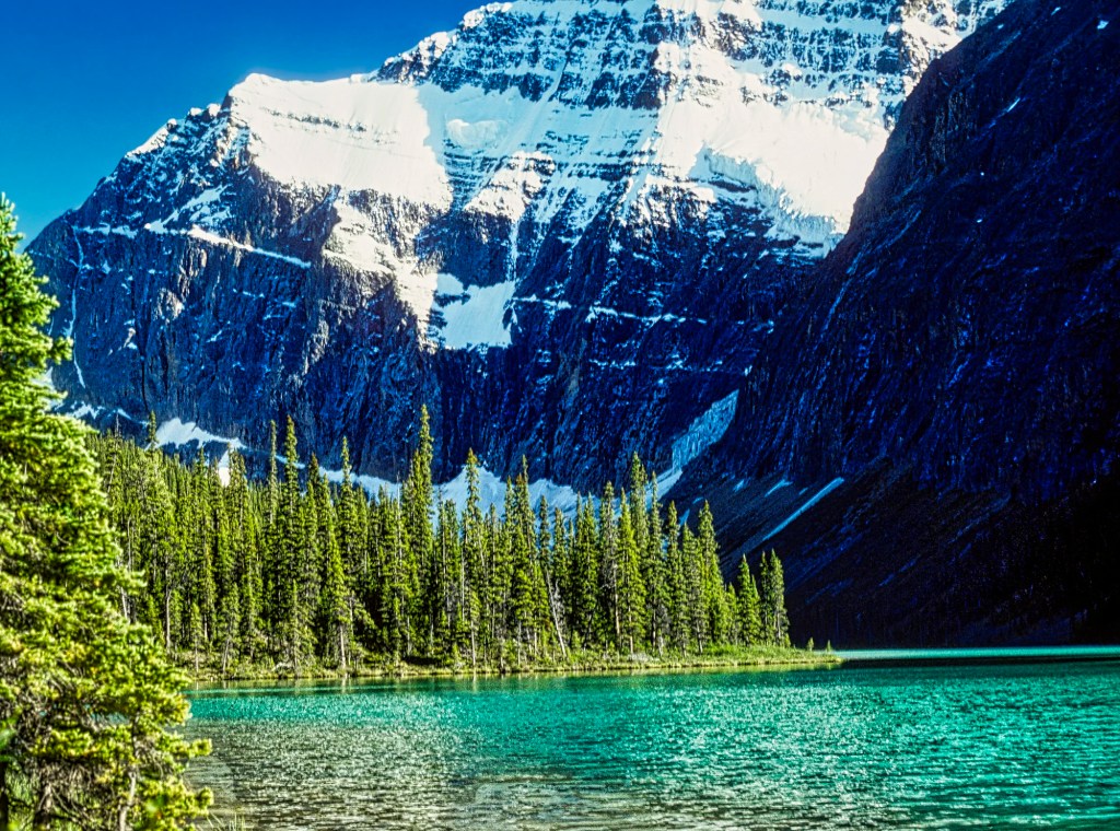 Cavell Pond has a mint-green colour but don’t expect it to look this big! A rock and ice fall roared down the valley flooding and damaging the valley including the lower return trail. Due to the danger of falling rock and ice, Parks Canada advises you to stay away from the cliffs and glaciers.