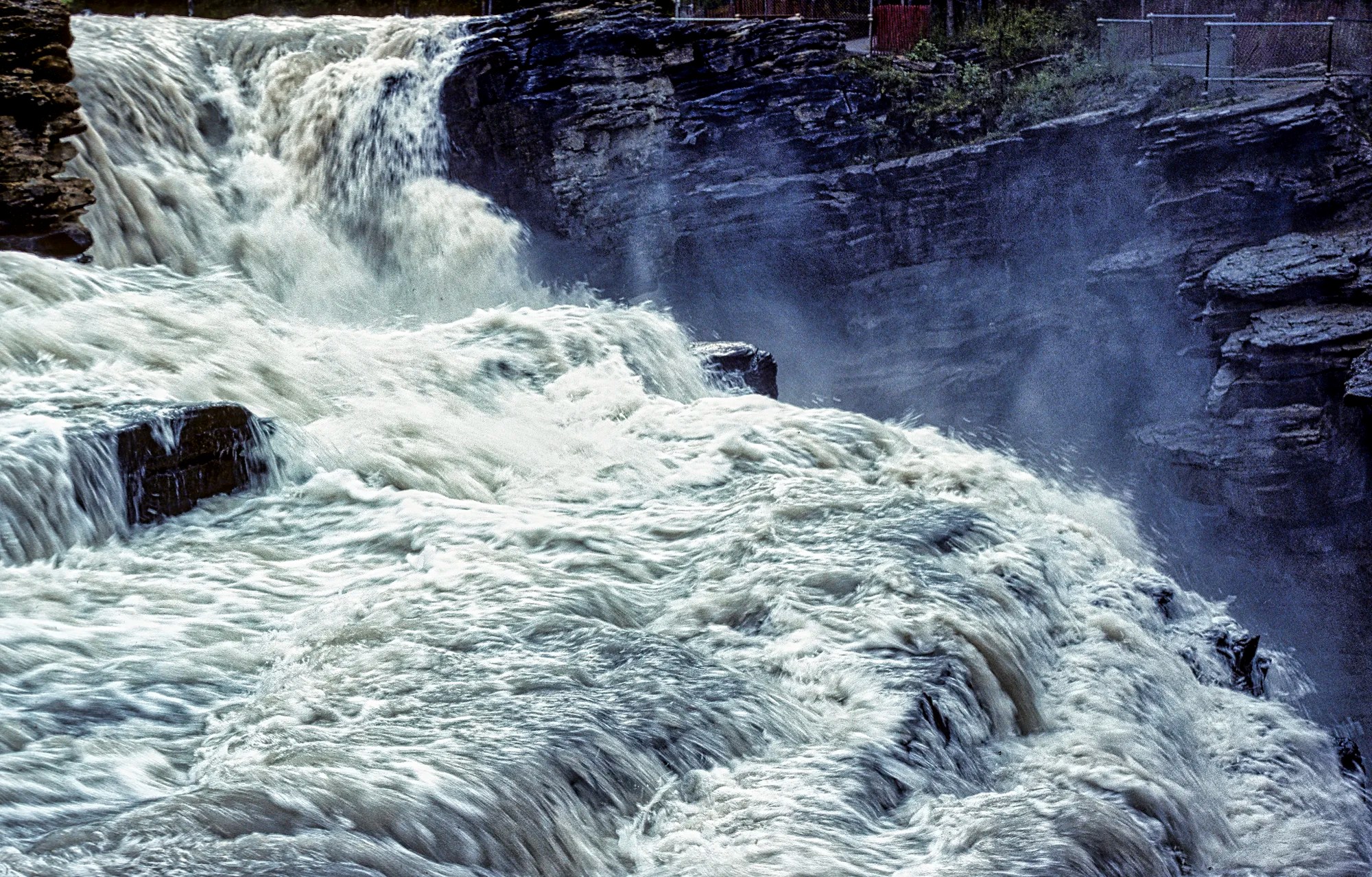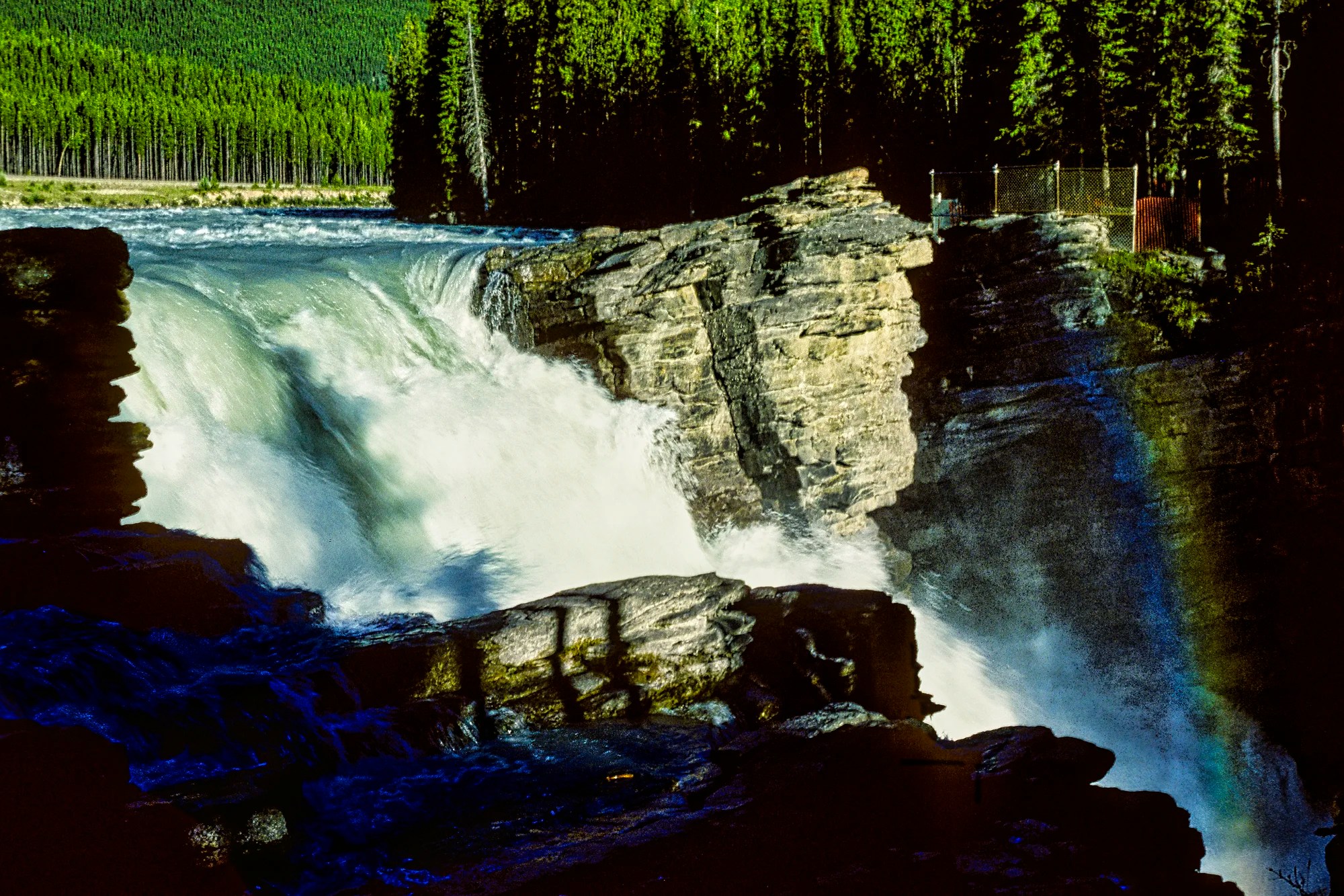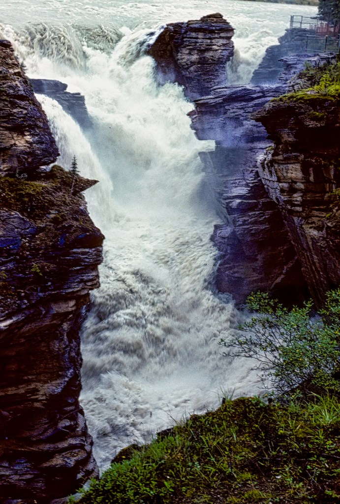 The Athabasca Falls are a spectacular and popular place. Due to tourist deaths in the past, all the pathways are railed or fenced. The downside is that there are narrow congestion points.