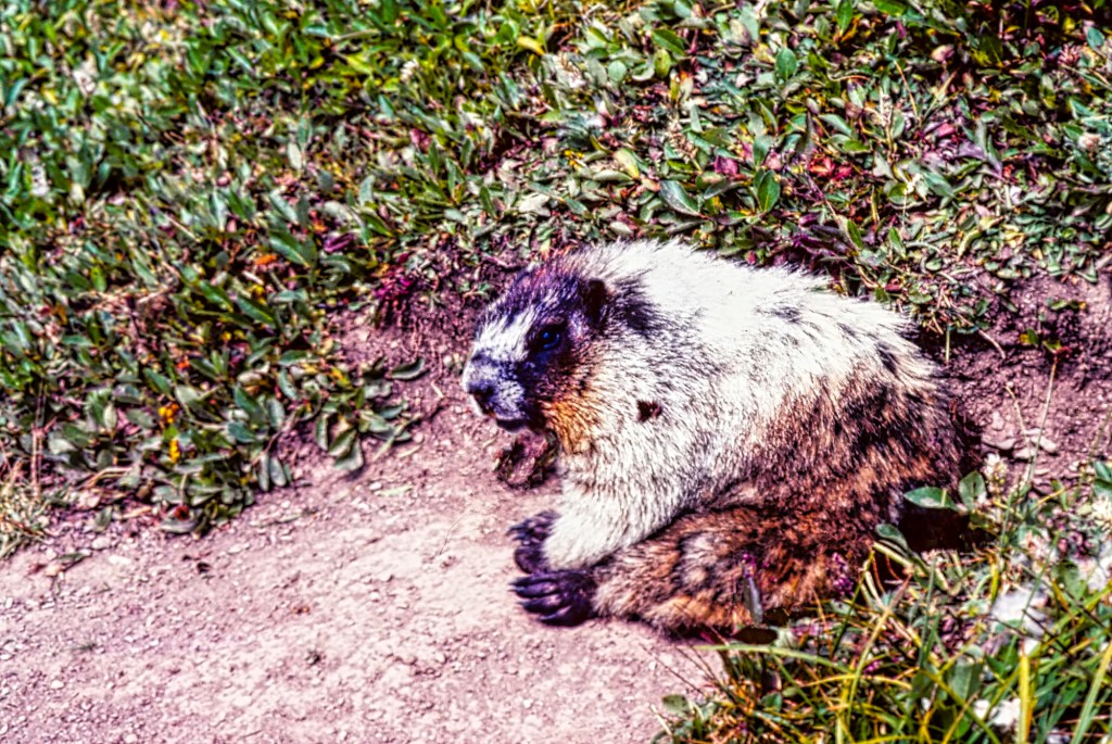The animals we saw more in Jasper NP than Banff were bears — we even saw one suntanning on its back on a picnic table one time! Marmots and pika are common in rock pile areas like Mt. Edith Cavell. This fat specimen must be a middle class marmot.