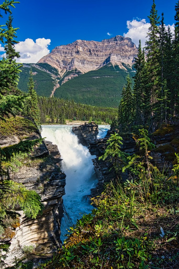 Athabasca Falls is one of the more dramatic waterfalls in the Rockies. You can feel the power of the water being forced through a narrow gap.