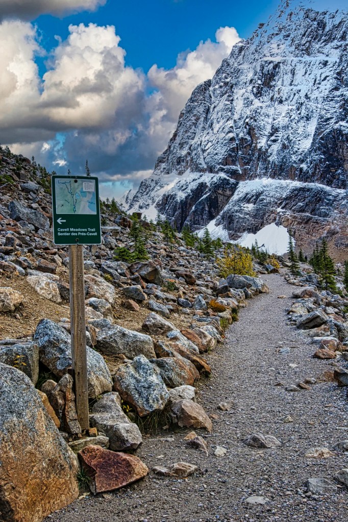 Cavell Meadows Trail and The Path of the Glacier are the same trail until this point. A left hand turn climbs steeply to Cavell Meadows where there are alpine flowers from mid-July to mid-August.