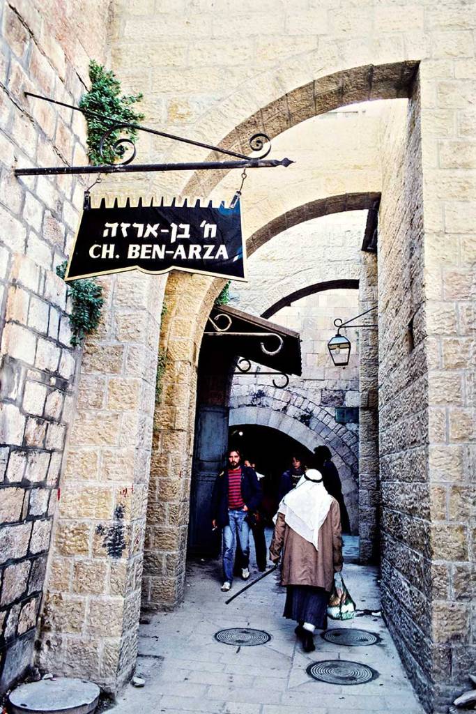 This is the Cardo, the main north-south Roman street that leads to the Damascus Gate. This was a covered arcade to protect shoppers. So today it once again has shopping stalls. Some things never change.