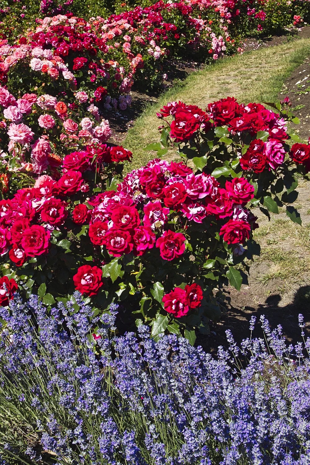 This vast Rose Garden is sprinkled with lavender and a few other plants. Lavender (Lavandula angustifolia) is native to the drier, warmer regions of Eurasia. It is grown commercially for the production of lavender essential oil, used in balms, perfumes, and cosmetics.