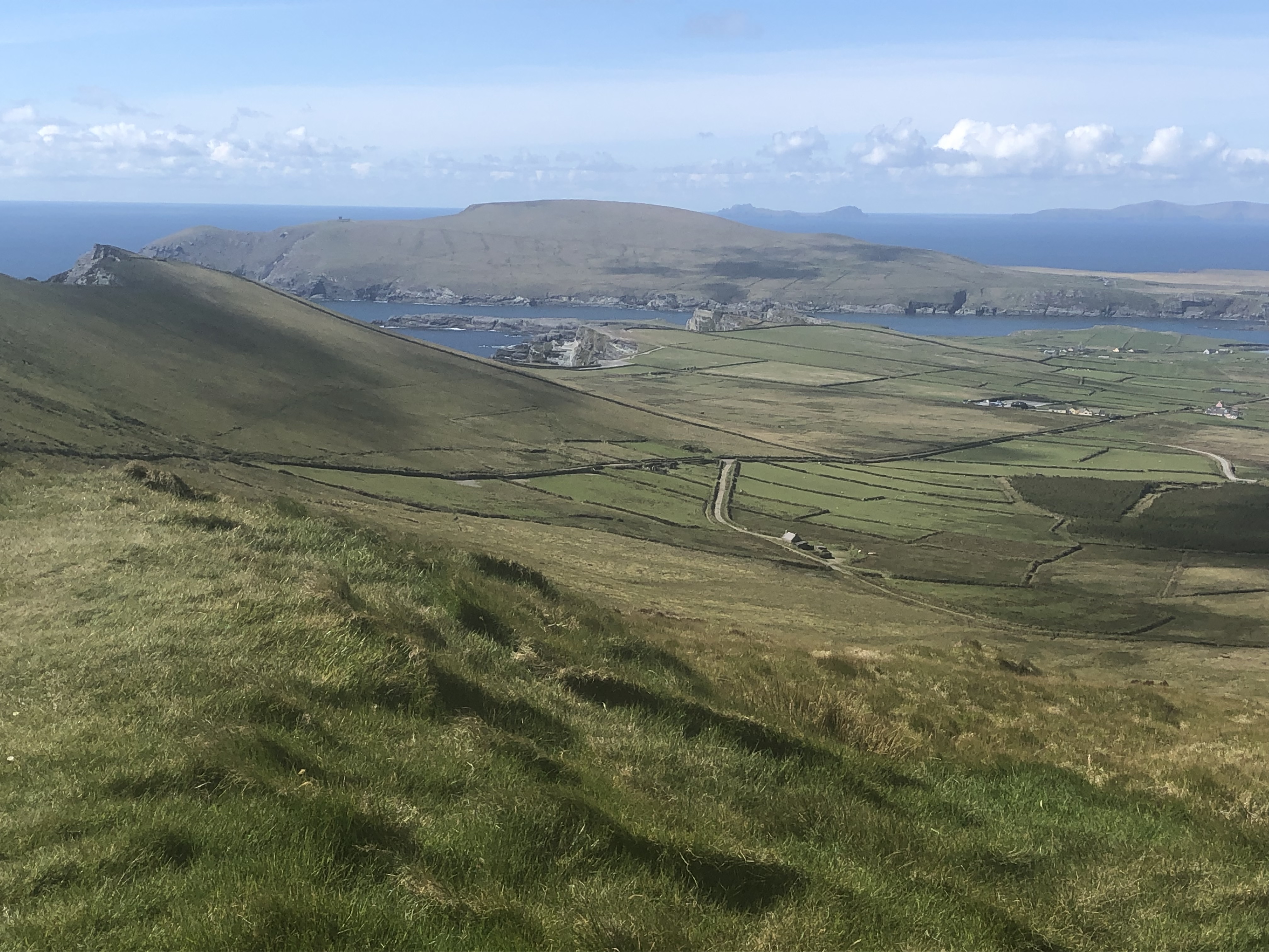 The Portmagee Cliff View above shows where the cliffs are located below the steeply curved slope on the left — but it is not a view of the cliffs. It is still a glorious viewpoint with Valentia Island in the background.
