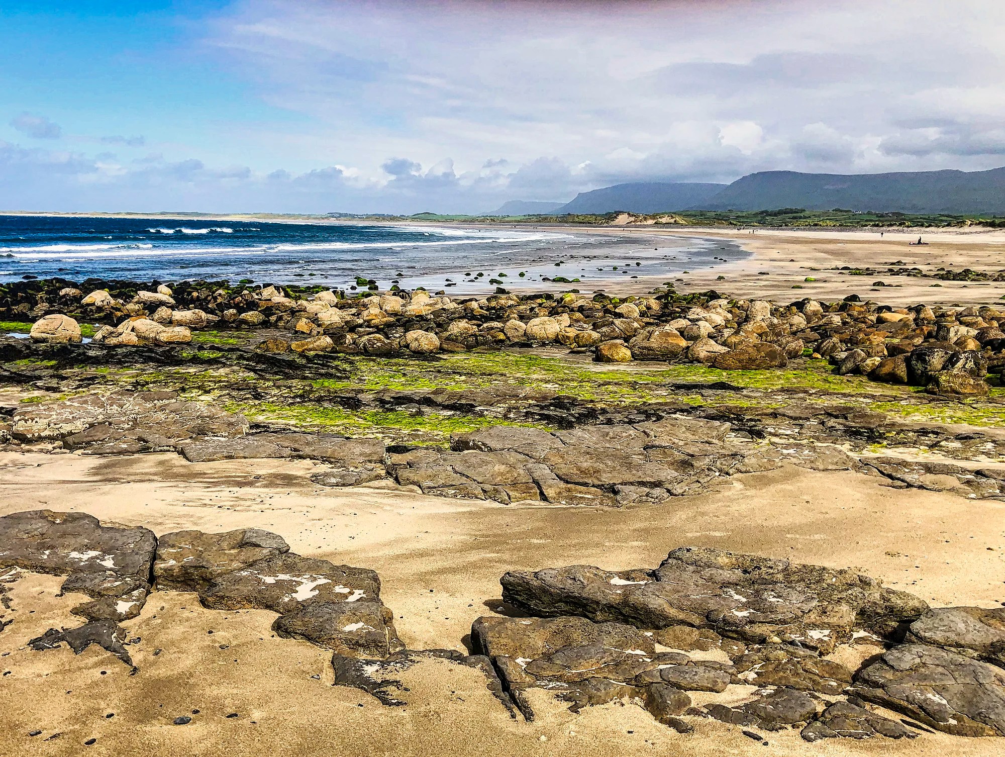 Discover fossil-laced headlands at Streedagh Beach (G4.8). The fossils look like worm casings. The undeveloped beach spans over three km of untouched sand and rocks, powerful waves and tranquil sand dunes. The area is home to diverse wildlife, including oystercatchers, curlews, plovers, and seals.