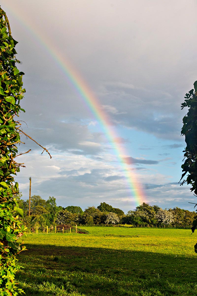 We arrived late on a rainy travel-to-Trim day. Suddenly, some blue sky appeared, and the most complete full semicircle rainbow came out. So where is that pot of gold?