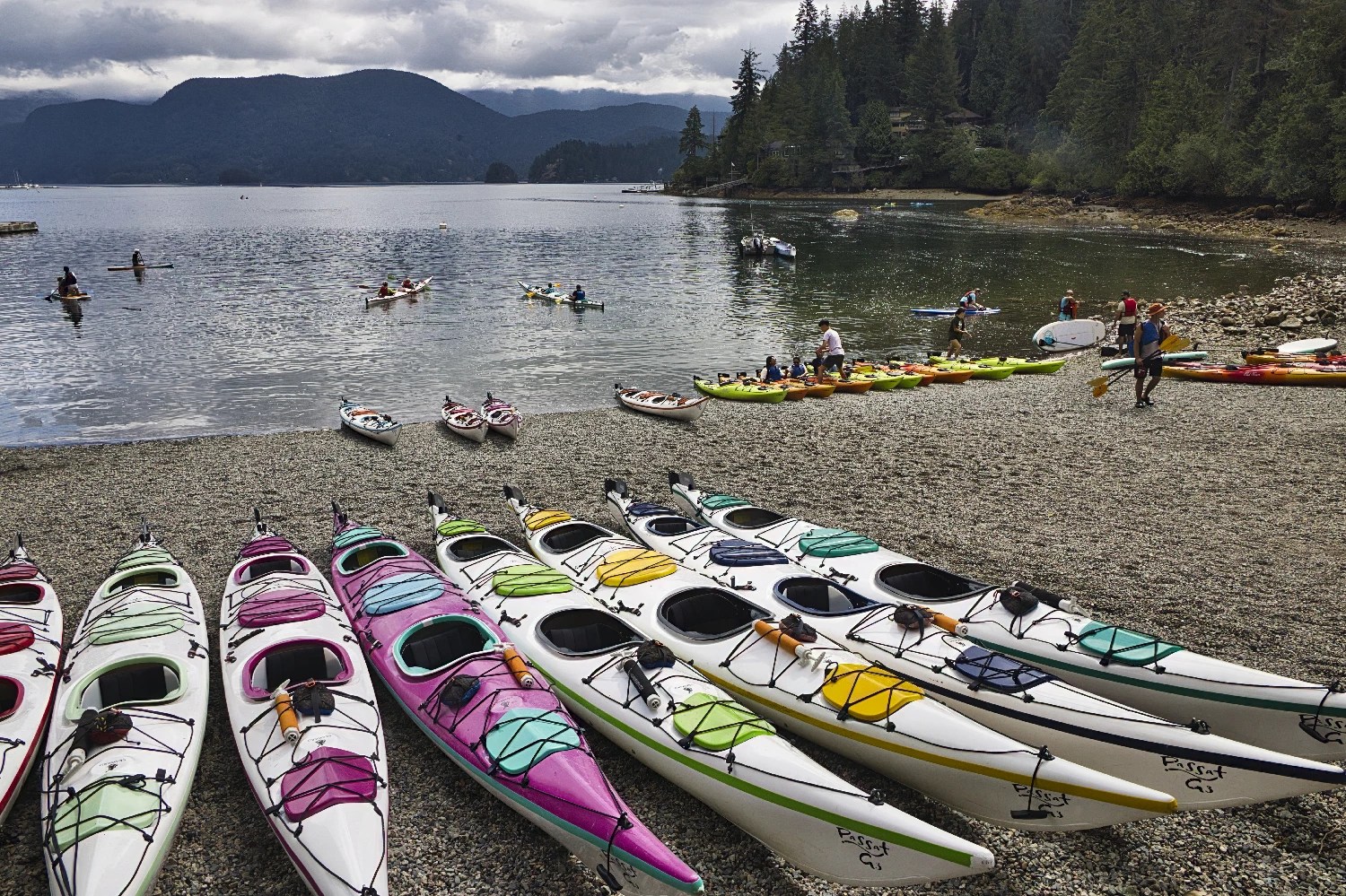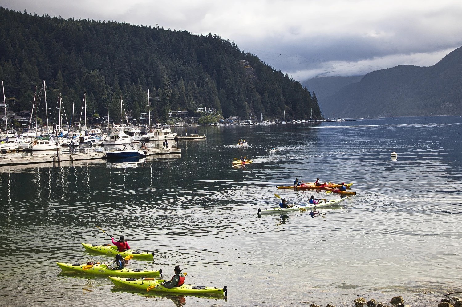 Head north to the boat rental building and toilets. Deep Cove is extremely popular for kayaking and paddleboarding on calm waters.