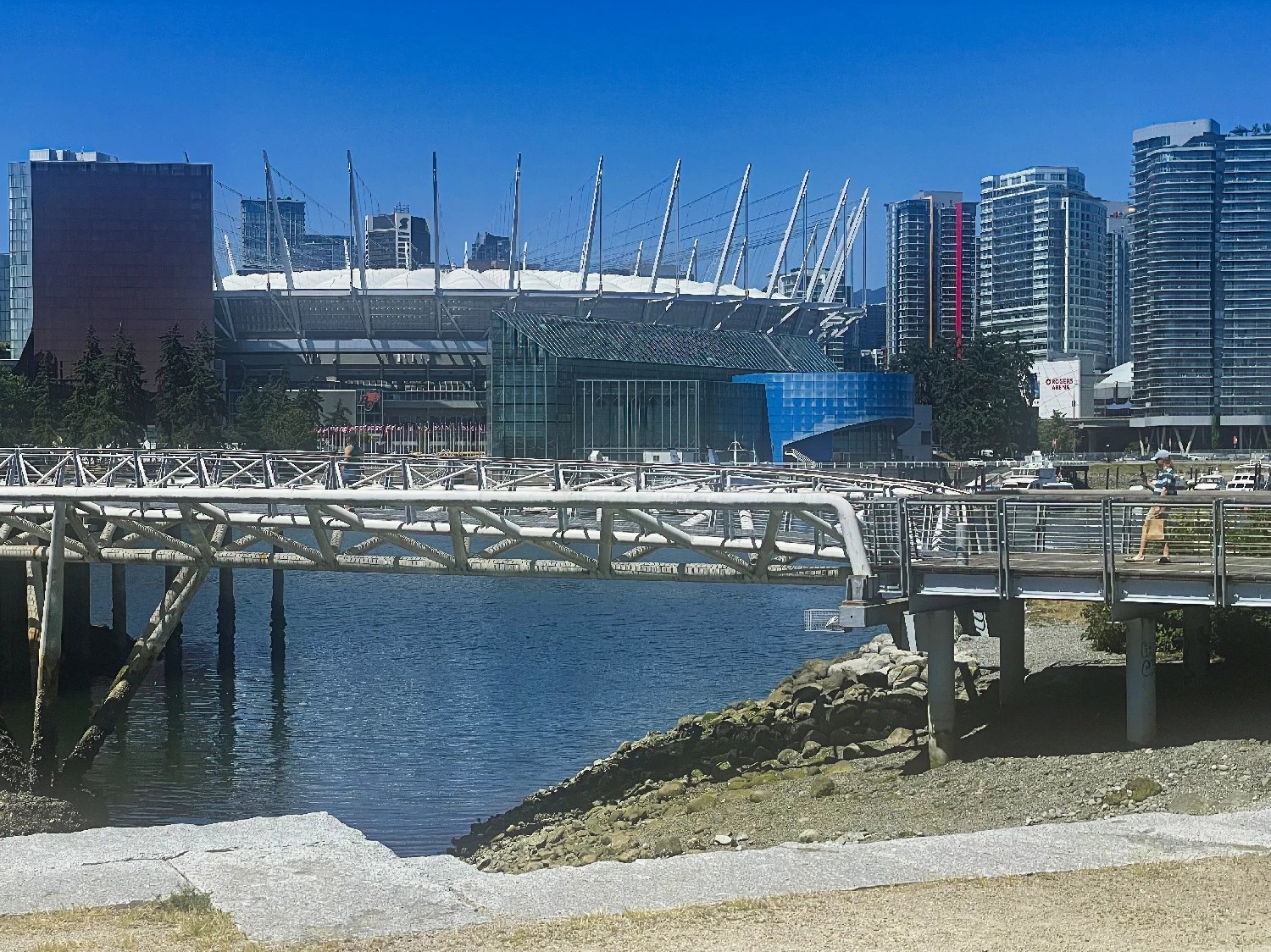 The north shore of False Creek was the location of the Expo 1986 world’s fair. It was later redeveloped into high-density condos and BC Place, the stadium for the BC Lions CFL football team. Another highlight is David Lum Park.