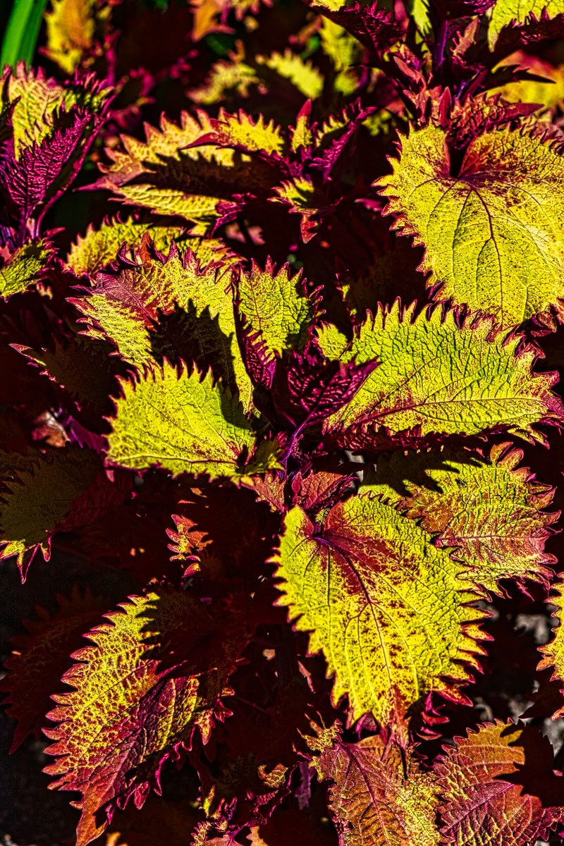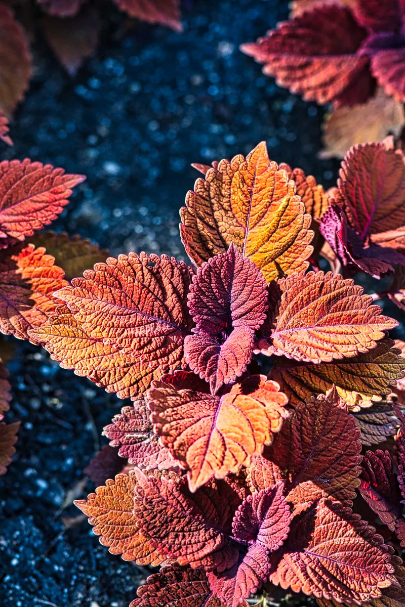 Common coleus is native to Southeast Asia. You can almost feel the texture of the leaves. It’s hard to believe that all these plants are in the same coleus family.
