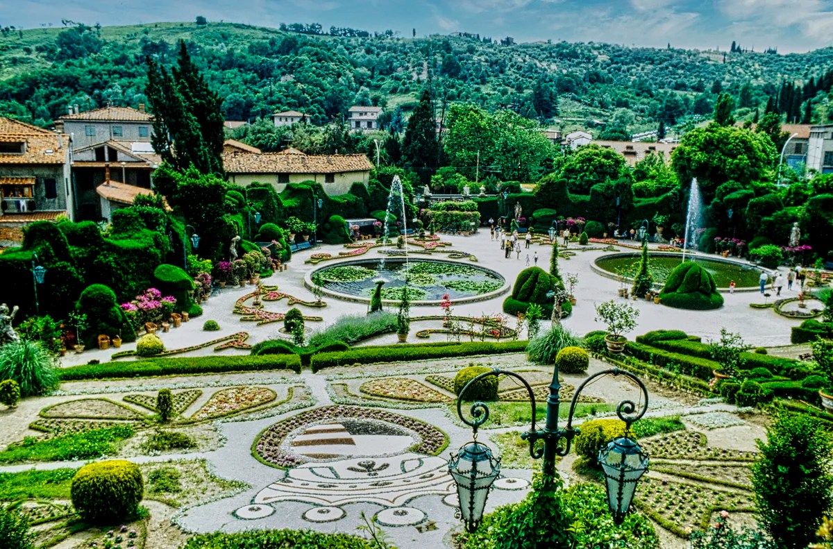 Gardens were often designed in traditional Italianate or French style. For instance, Villa Garzoni Garden in Italy uses symmetrical, geometric shapes containing flowers in precise if not contrived patterns with no natural habitat.